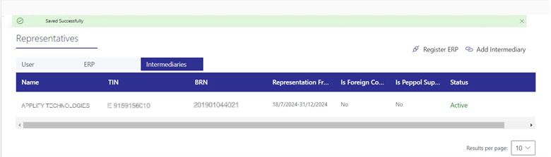 Next, scroll to the Representatives section and select the ‘ERP’ tab to view existing clients. Then, click ‘Register ERP’ to continue with the registration process.